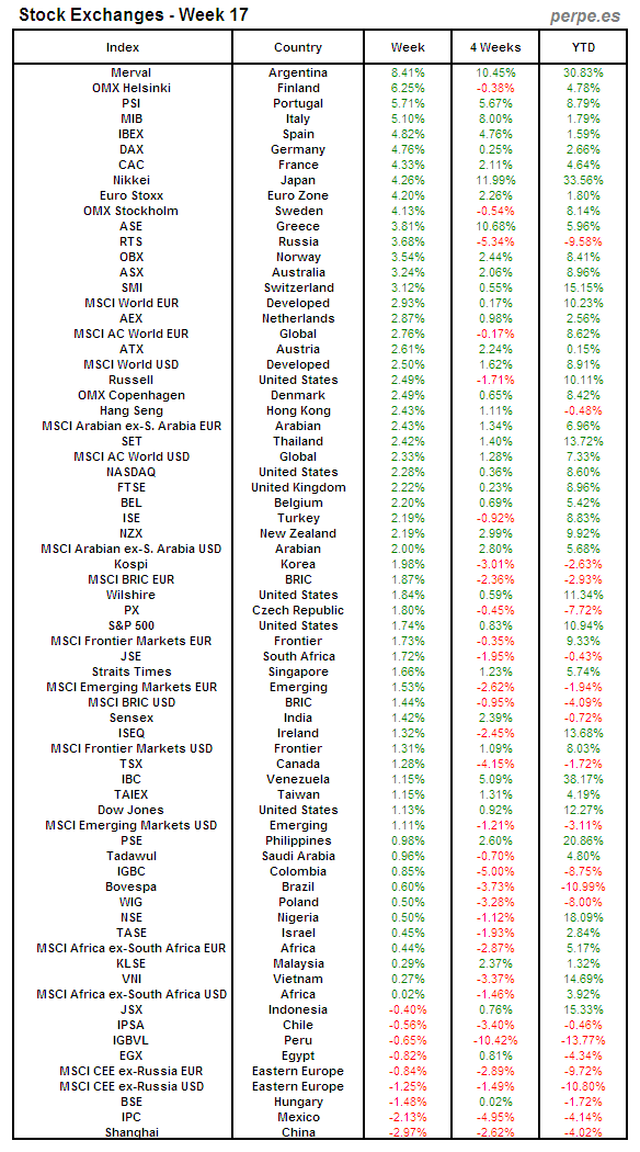 Bolsas Mundiales: Semana 17