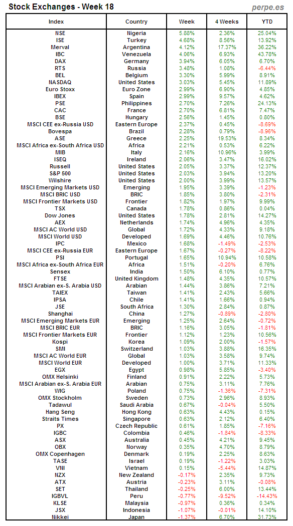 Bolsas Mundiales: Semana 18