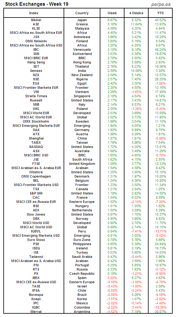 Bolsas Mundiales: Semana 19