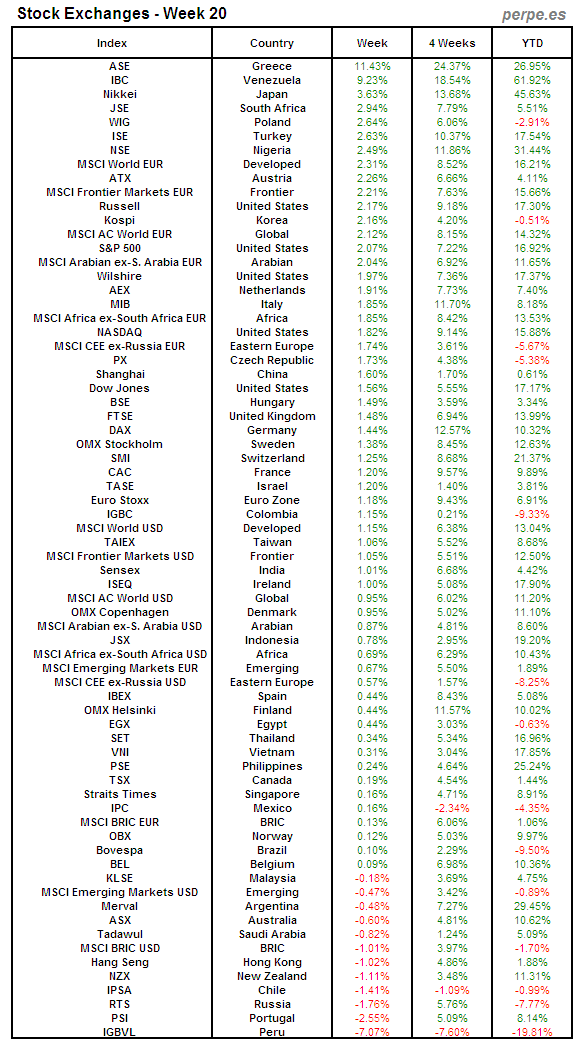 Bolsas Mundiales: Semana 20