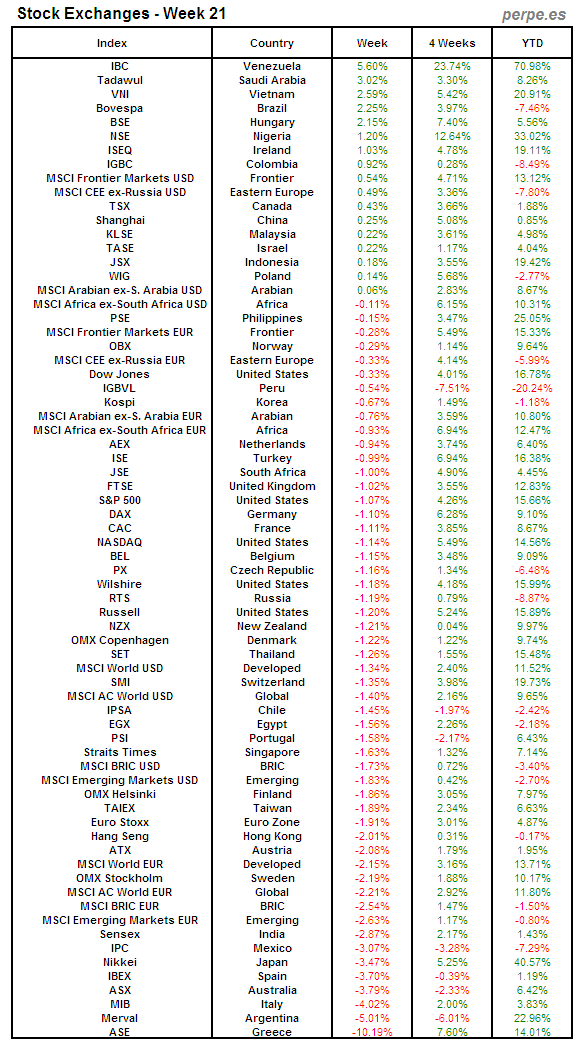 Bolsas Mundiales: Semana 21
