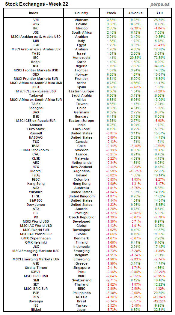 Bolsas Mundiales: Semana 22