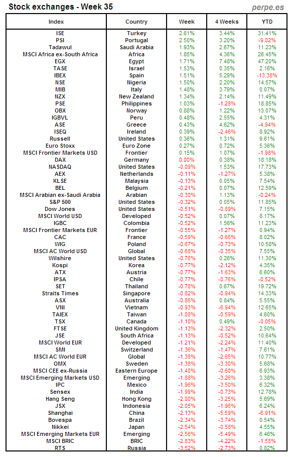 Bolsas Mundiales: Semana 35
