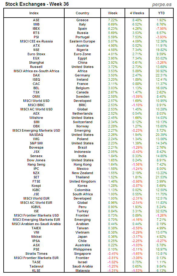 Bolsas Mundiales: Semana 36