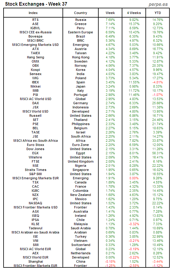 Bolsas Mundiales: Semana 37