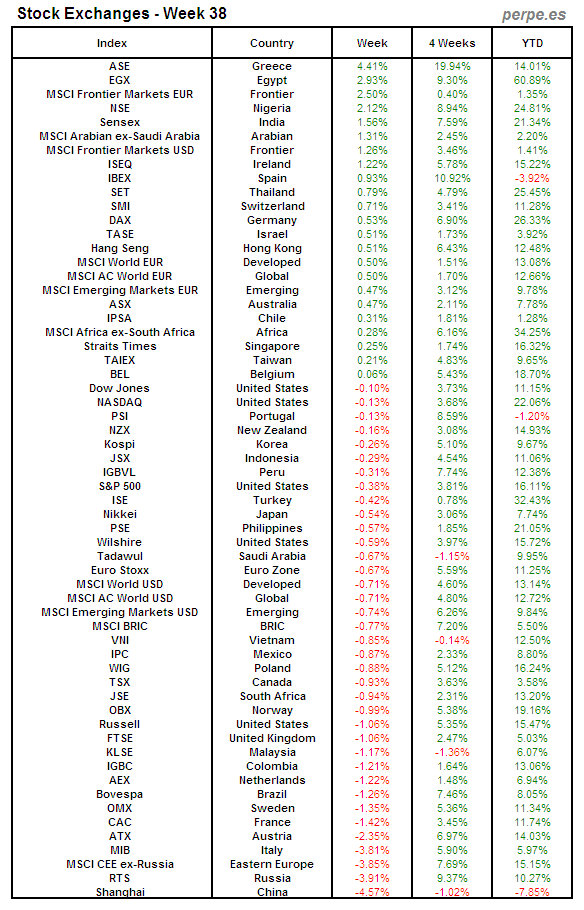 Bolsas Mundiales: Semana 38