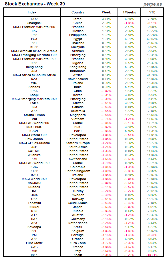 Bolsas Mundiales: Semana 39
