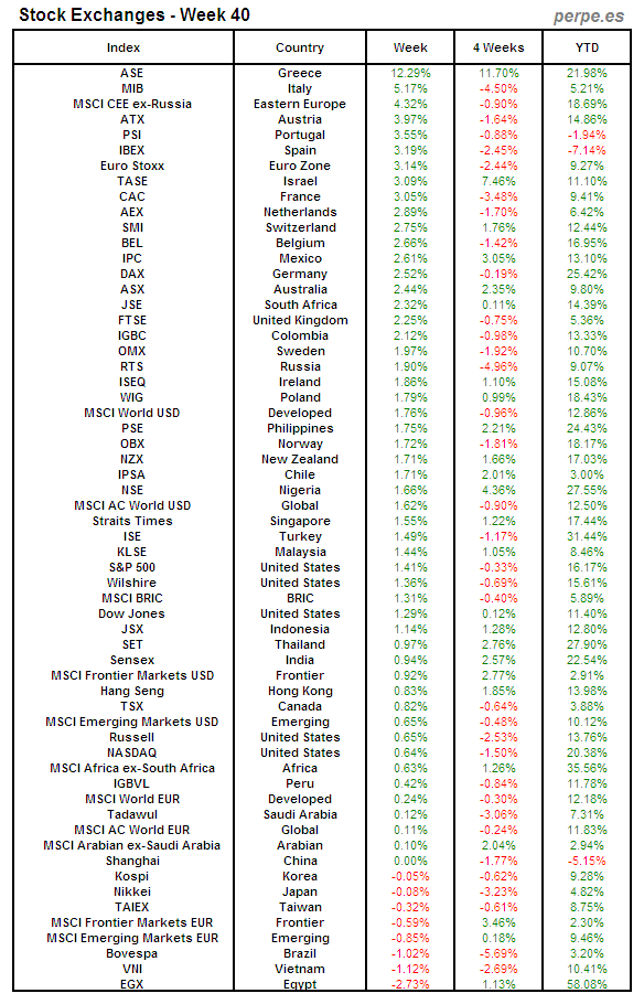 Bolsas Mundiales: Semana 40