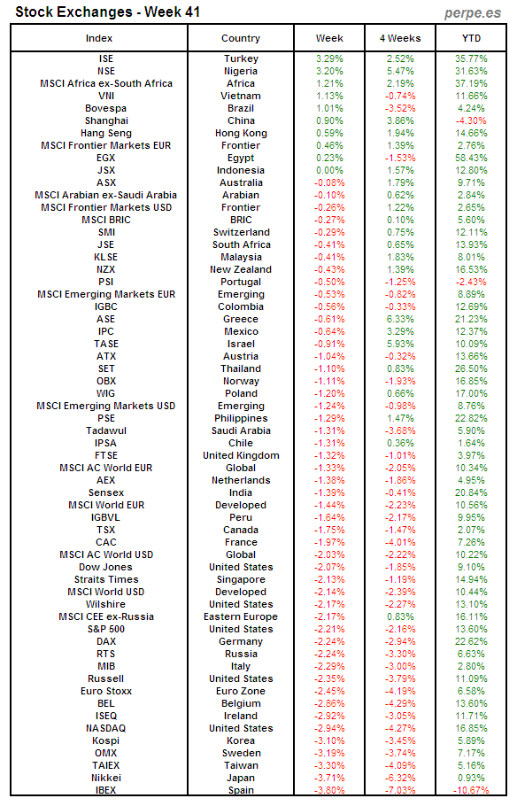Bolsas Mundiales: Semana 41