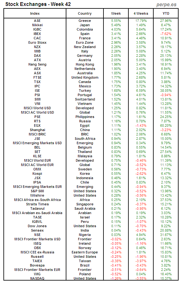 Bolsas Mundiales: Semana 42