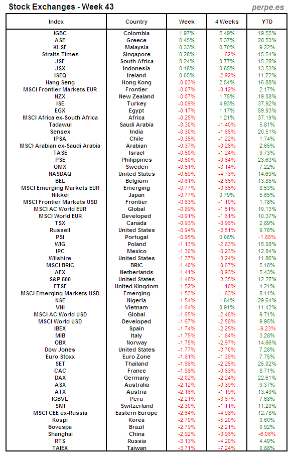 Bolsas Mundiales: Semana 43