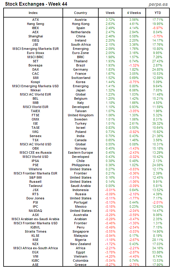 Bolsas Mundiales: Semana 44