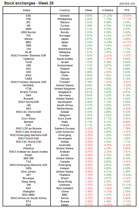 Bolsas Mundiales: Semana 25