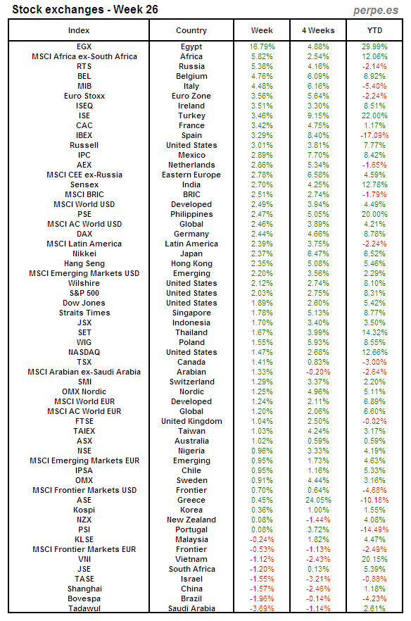 Bolsas Mundiales: Semana 26