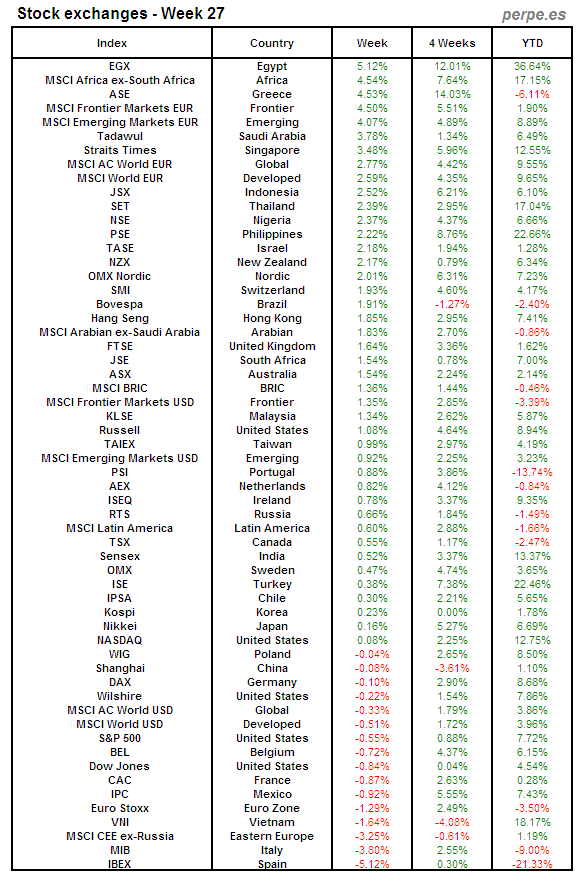 Bolsas Mundiales: Semana 27