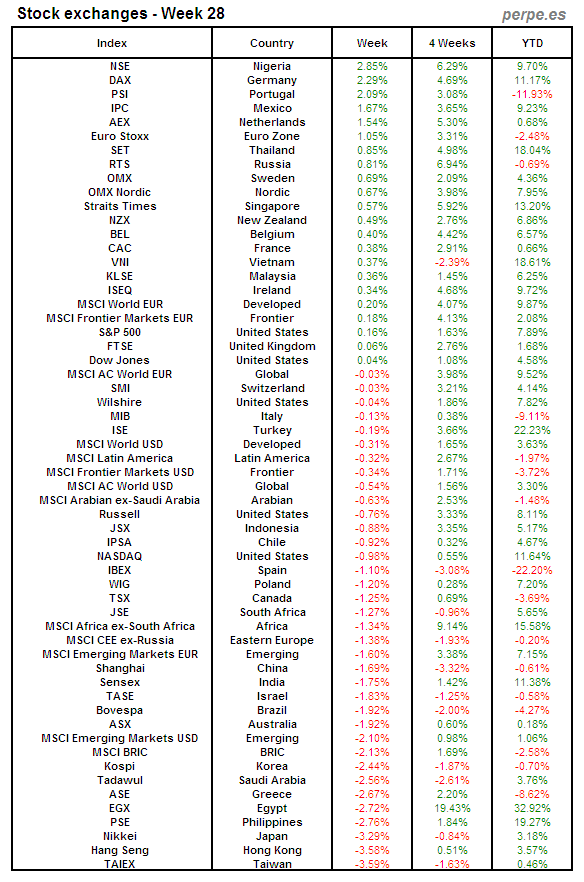 Bolsas Mundiales: Semana 28