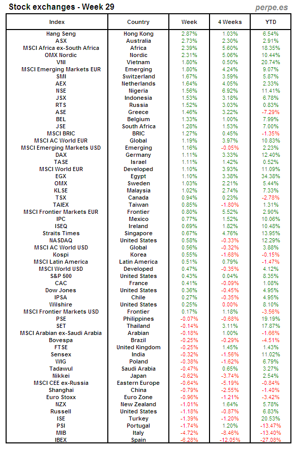 Bolsas Mundiales: Semana 29