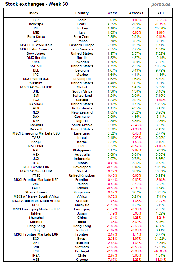 Bolsas Mundiales: Semana 30