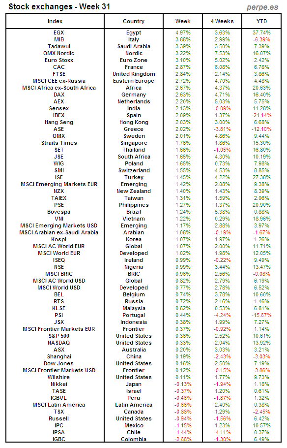Bolsas Mundiales: Semana 31