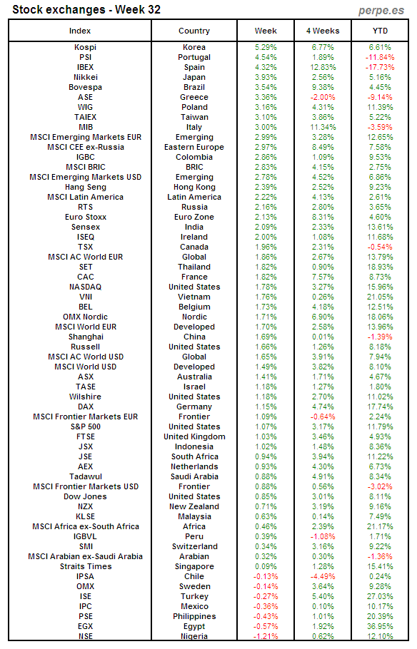 Bolsas Mundiales: Semana 32