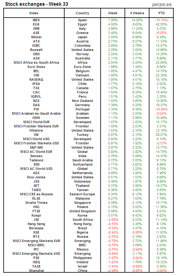 Bolsas Mundiales: Semana 33