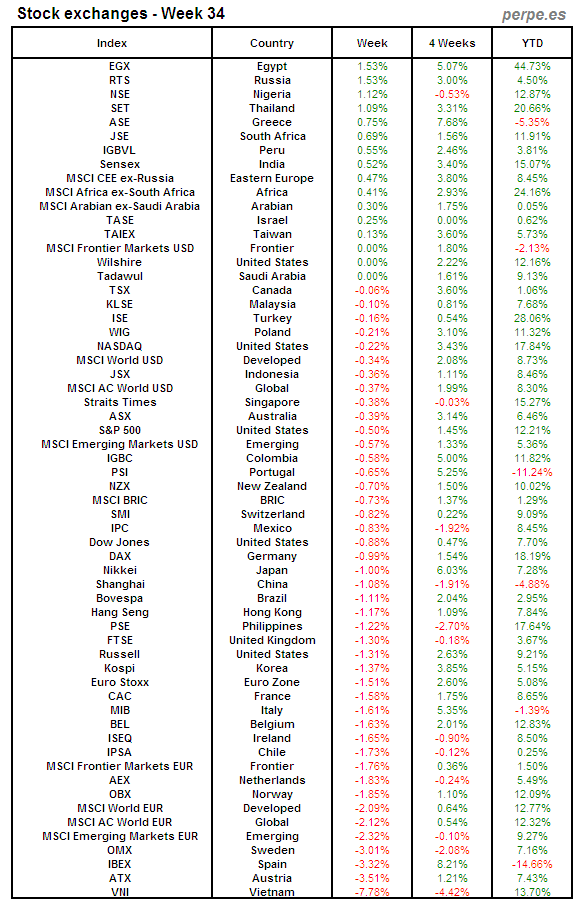 Bolsas Mundiales: Semana 34