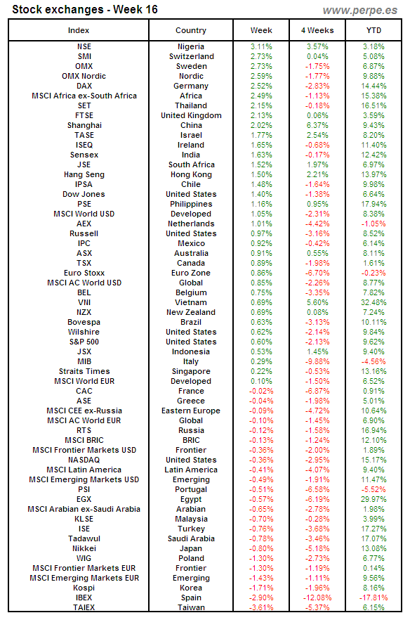 Bolsas Mundiales: Semana 16