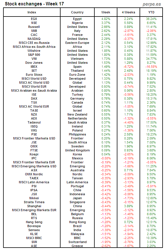 Bolsas Mundiales: Semana 17