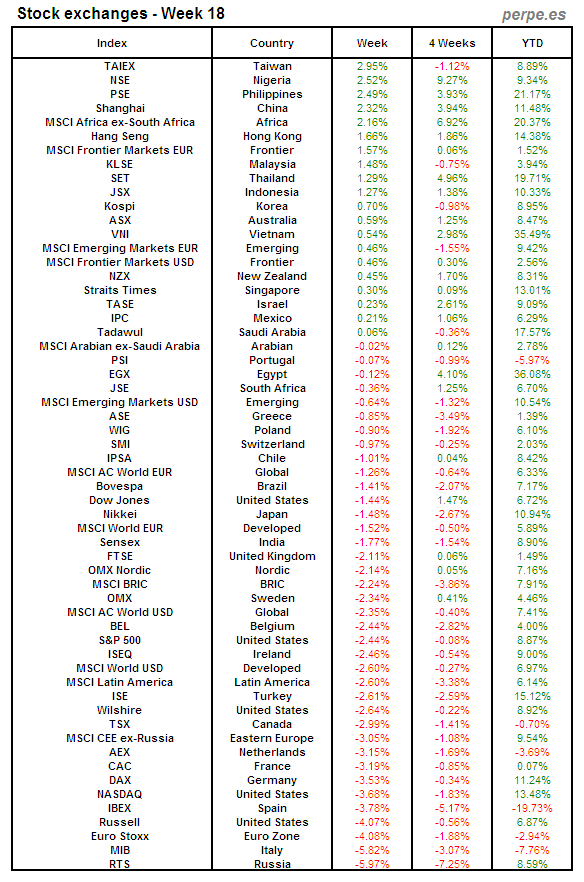 Bolsas Mundiales: Semana 18