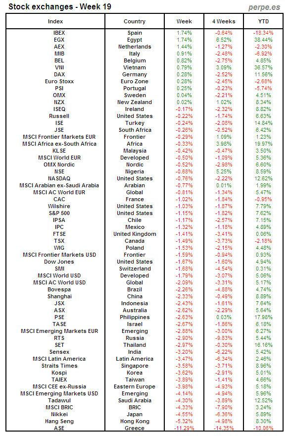 Bolsas Mundiales: Semana 19