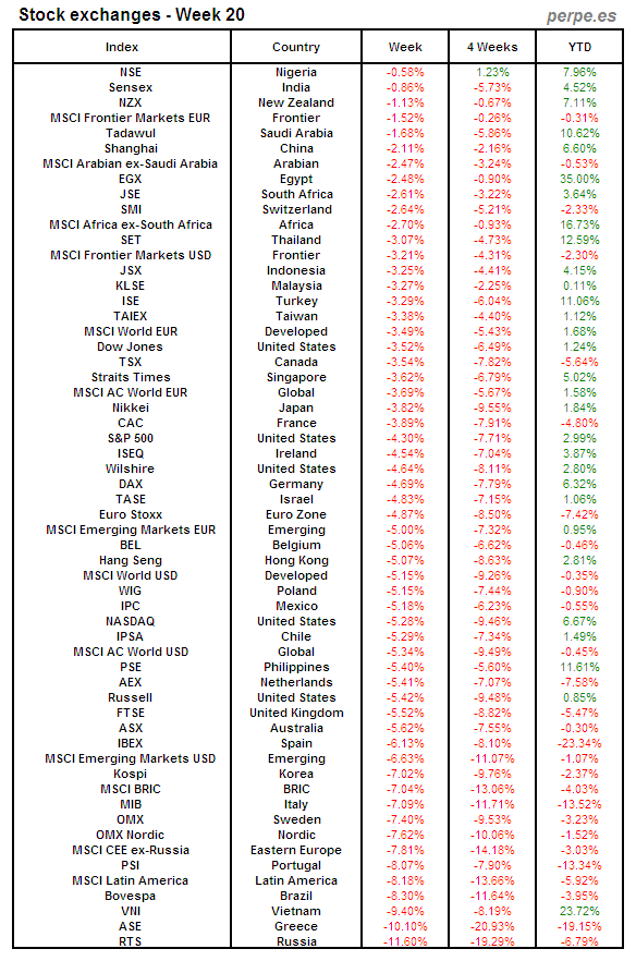 Bolsas Mundiales: Semana 20