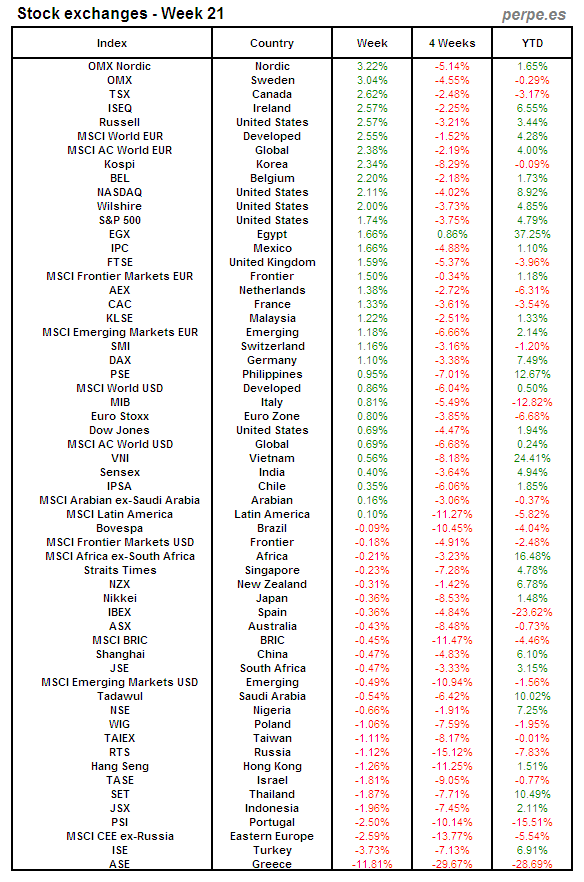 Bolsas Mundiales: Semana 21