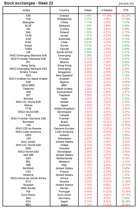 Bolsas Mundiales: Semana 22