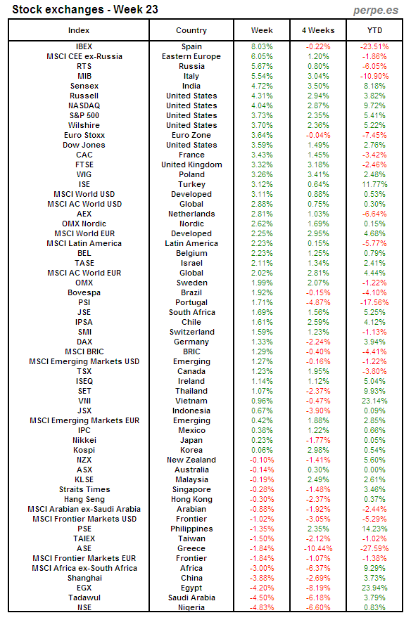 Bolsas Mundiales: Semana 23