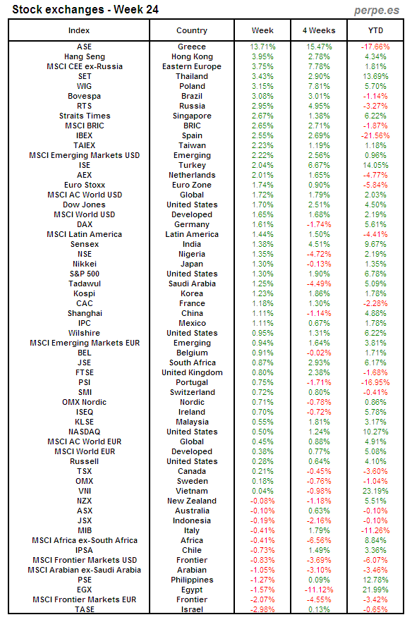 Bolsas Mundiales: Semana 24