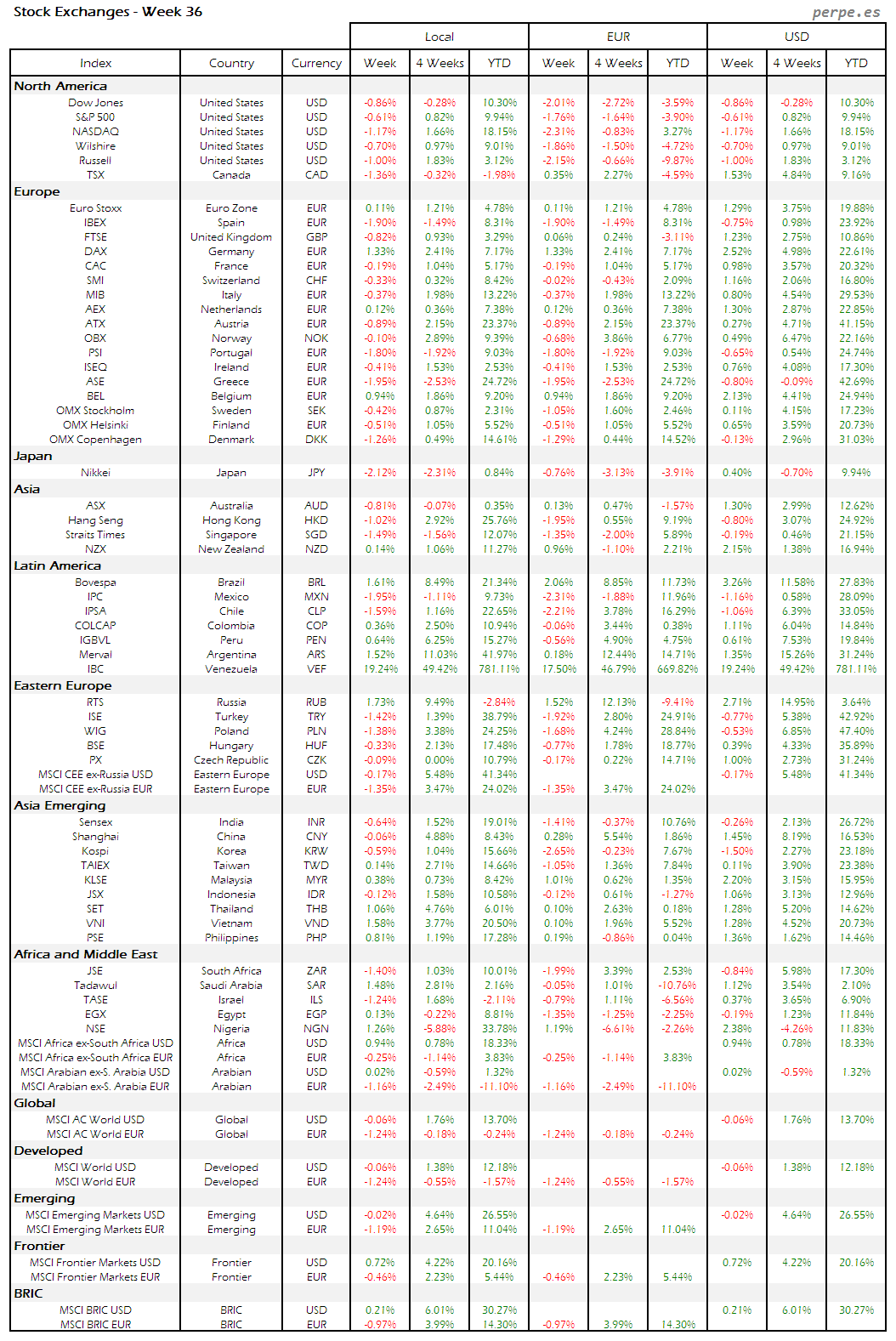 Bolsas Mundiales – Moneda Local, EUR, USD: Semana 36