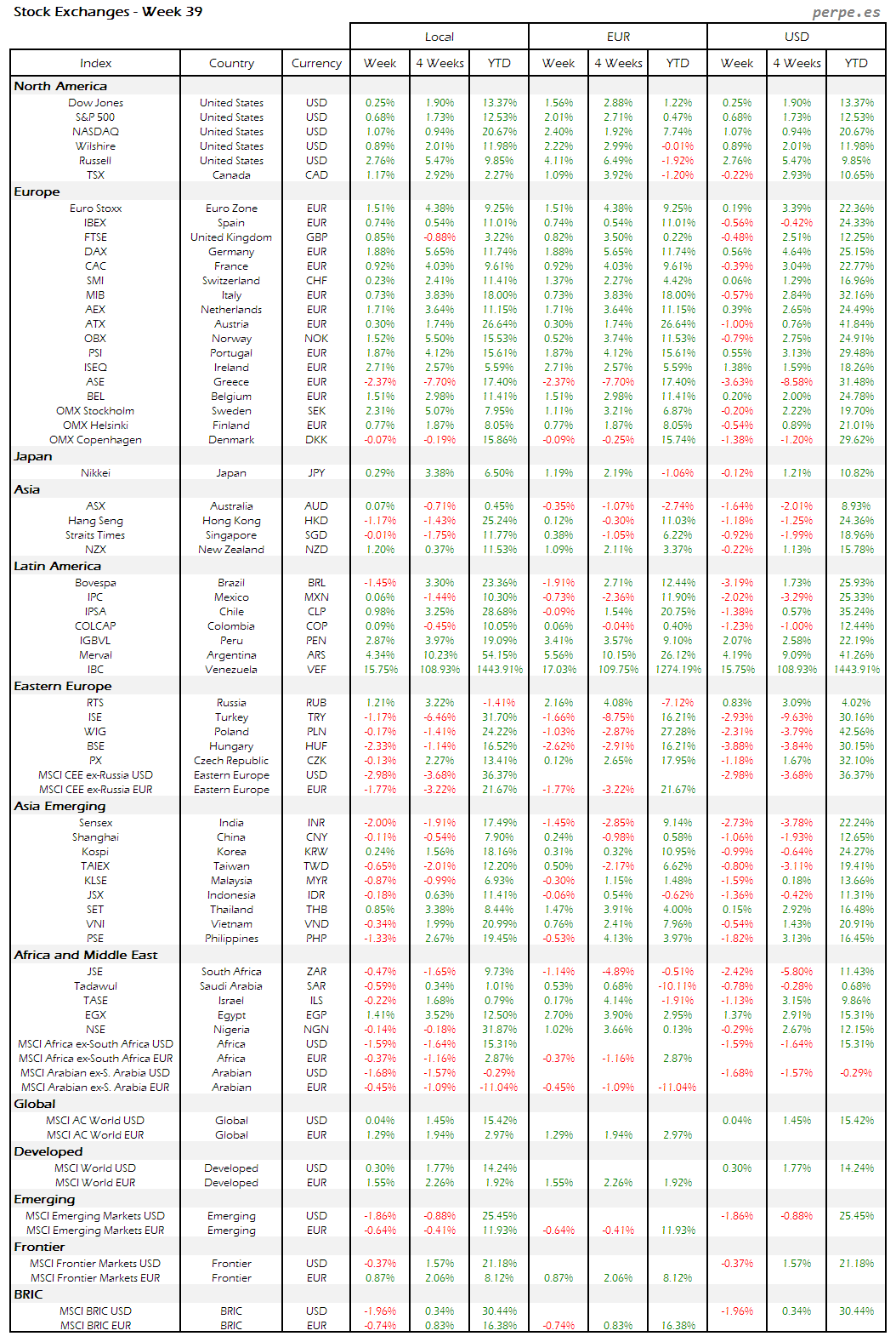 Bolsas Mundiales – Moneda Local, EUR, USD: Semana 39