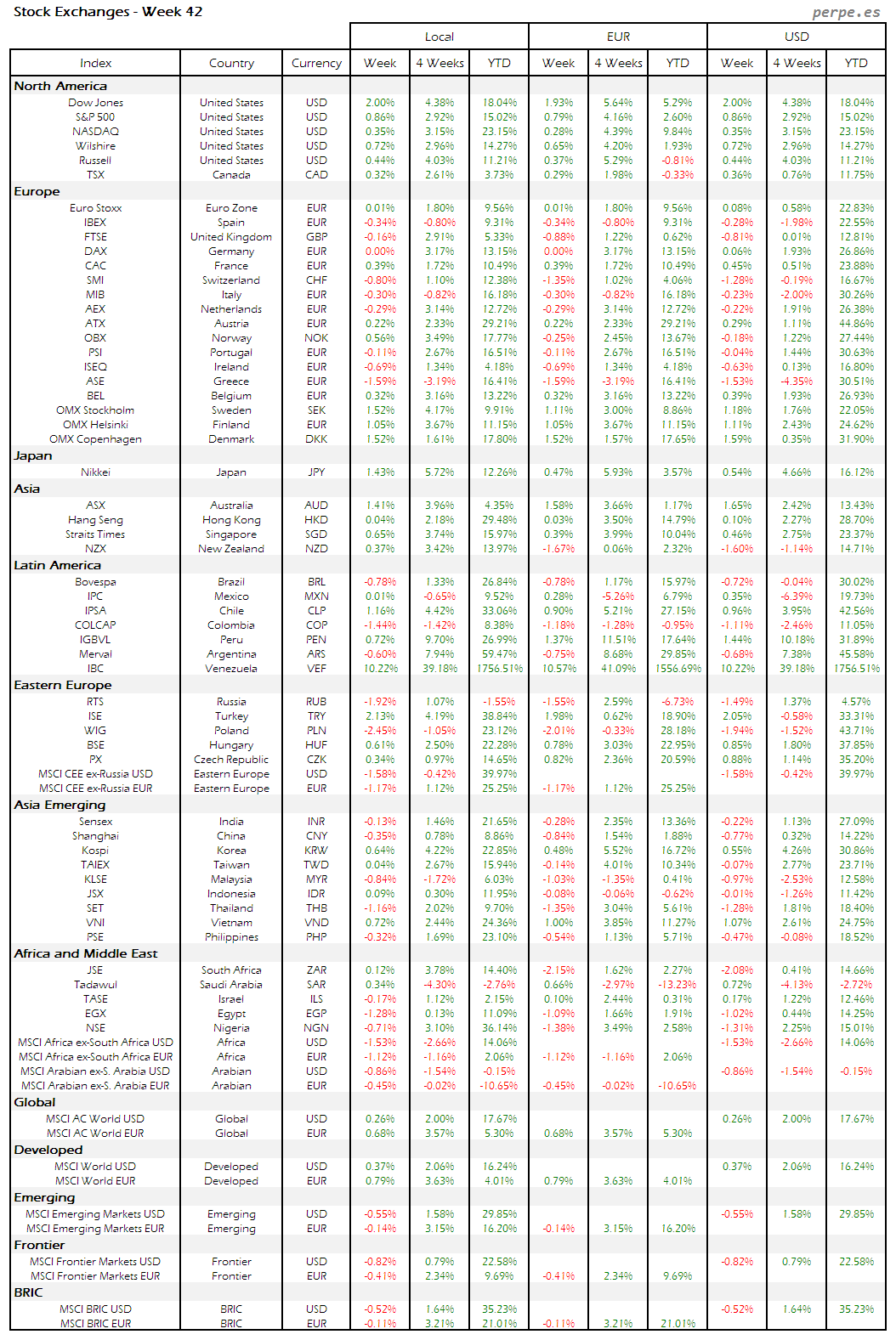Bolsas Mundiales – Moneda Local, EUR, USD: Semana 42