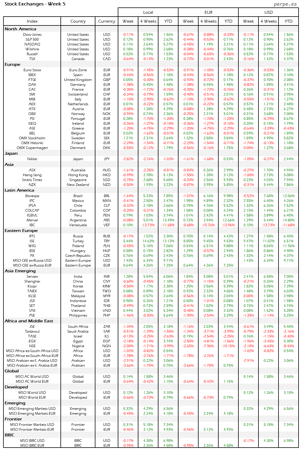 Bolsas Mundiales – Moneda Local, EUR, USD: Semana 5