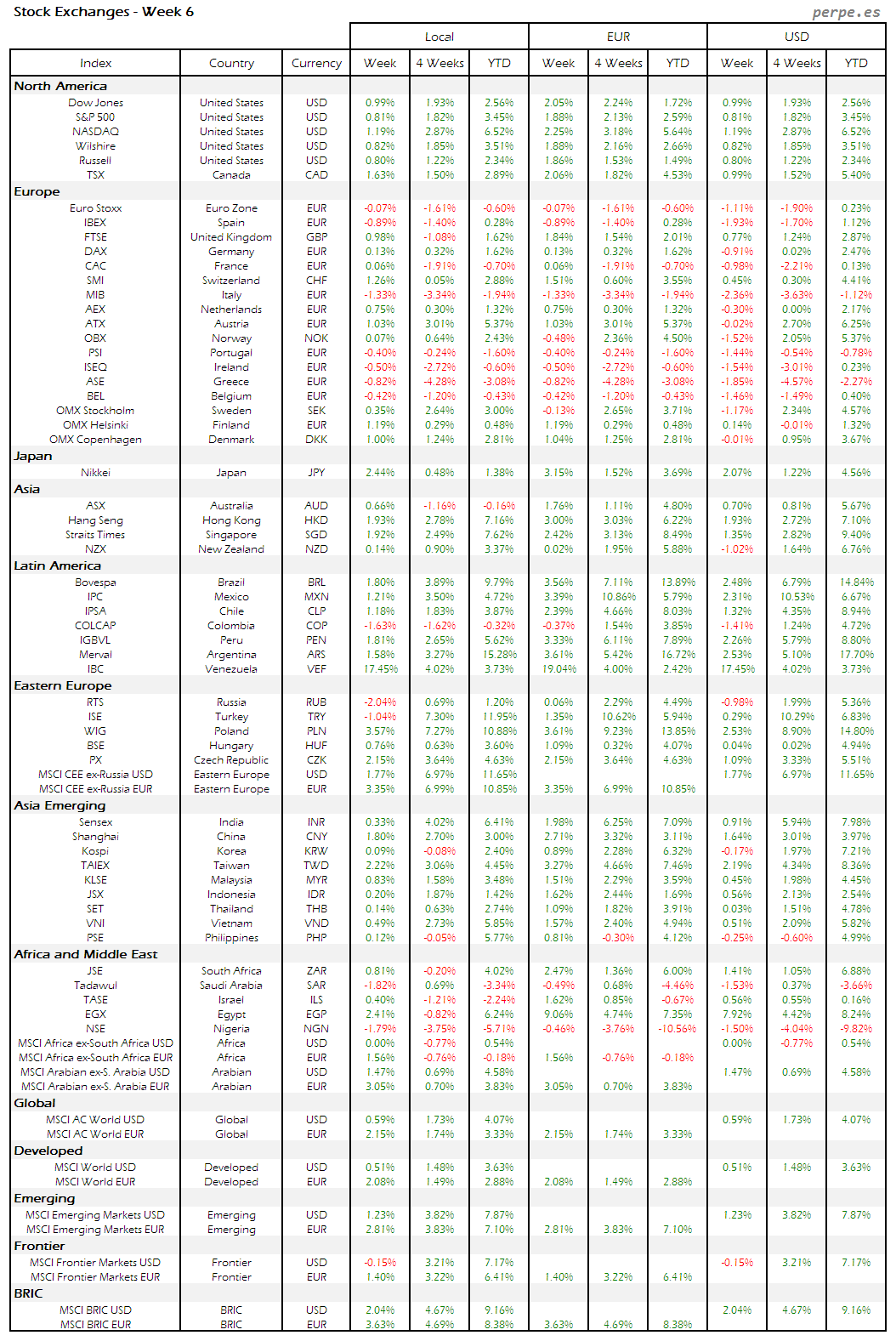 Bolsas Mundiales – Moneda Local, EUR, USD: Semana 6