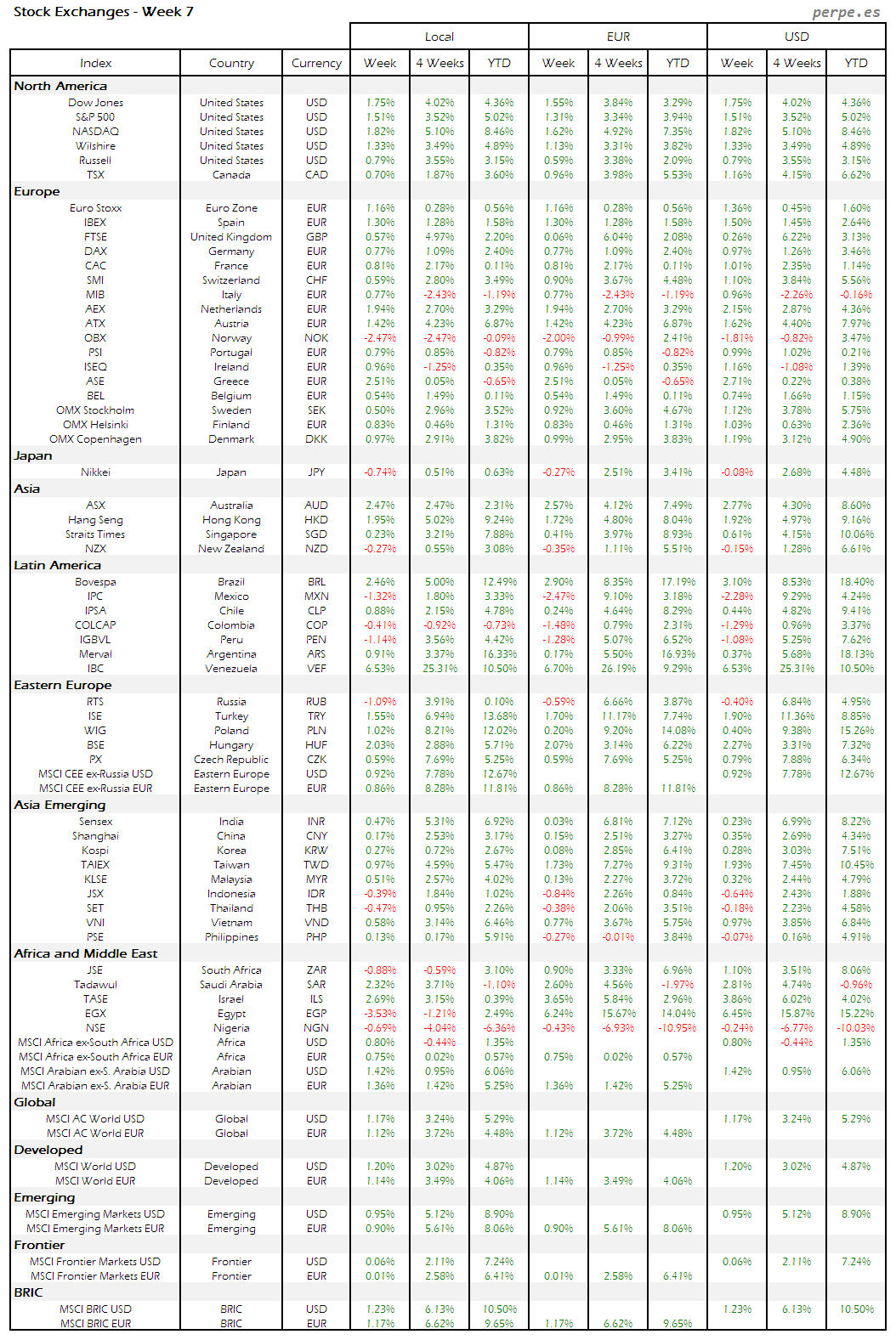 Bolsas Mundiales – Moneda Local, EUR, USD: Semana 7