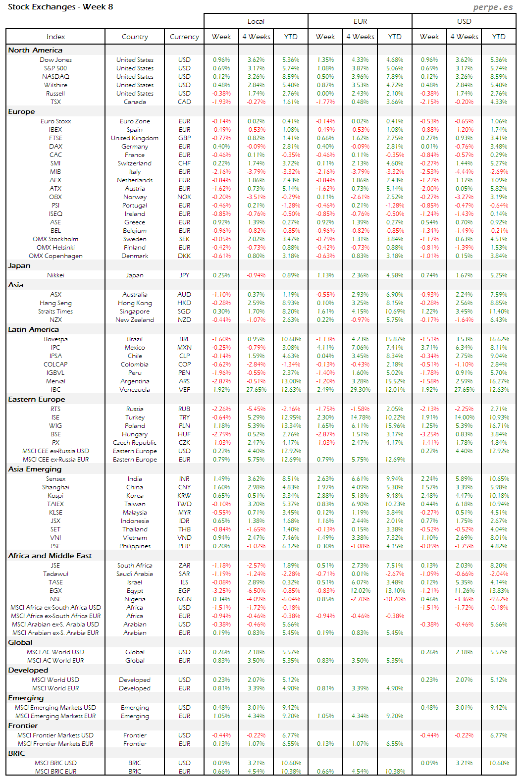 Bolsas Mundiales – Moneda Local, EUR, USD: Semana 8
