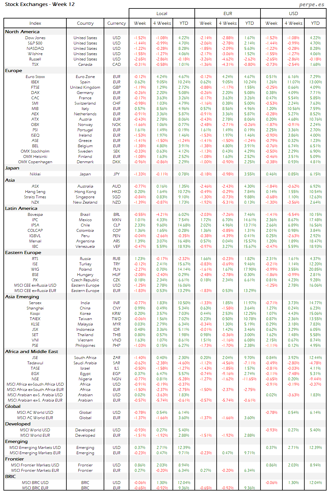 Bolsas Mundiales – Moneda Local, EUR, USD: Semana 12