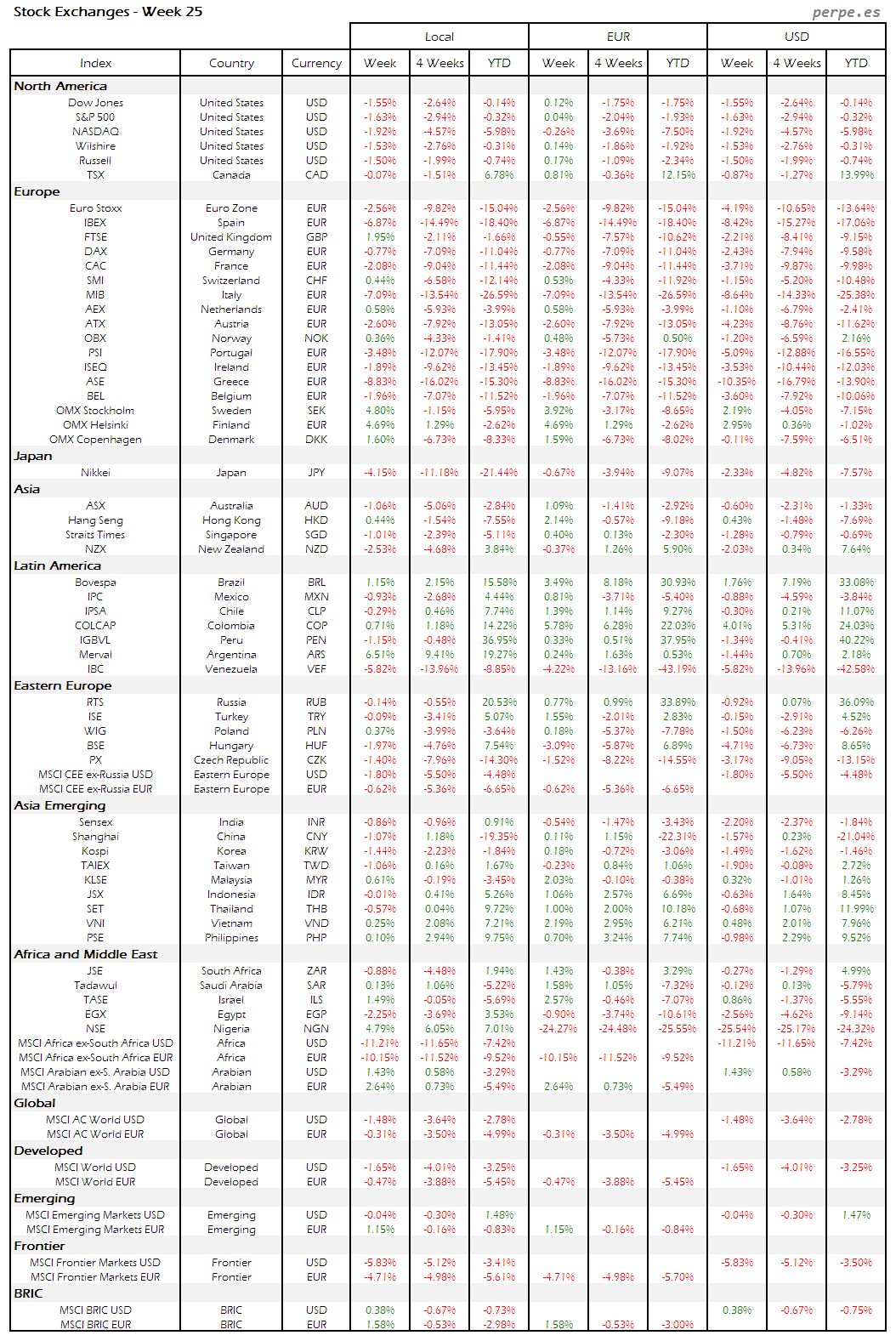 Bolsas Mundiales – Moneda Local, EUR, USD: Semana 25