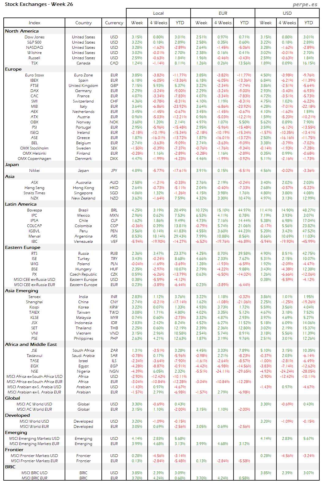 Bolsas Mundiales – Moneda Local, EUR, USD: Semana 26