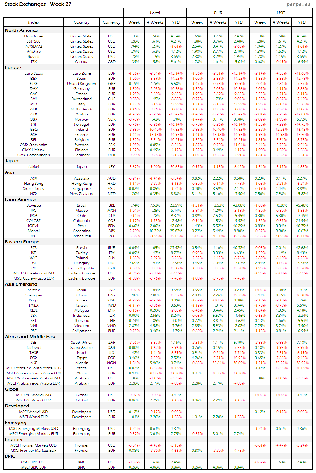Bolsas Mundiales – Moneda Local, EUR, USD: Semana 27