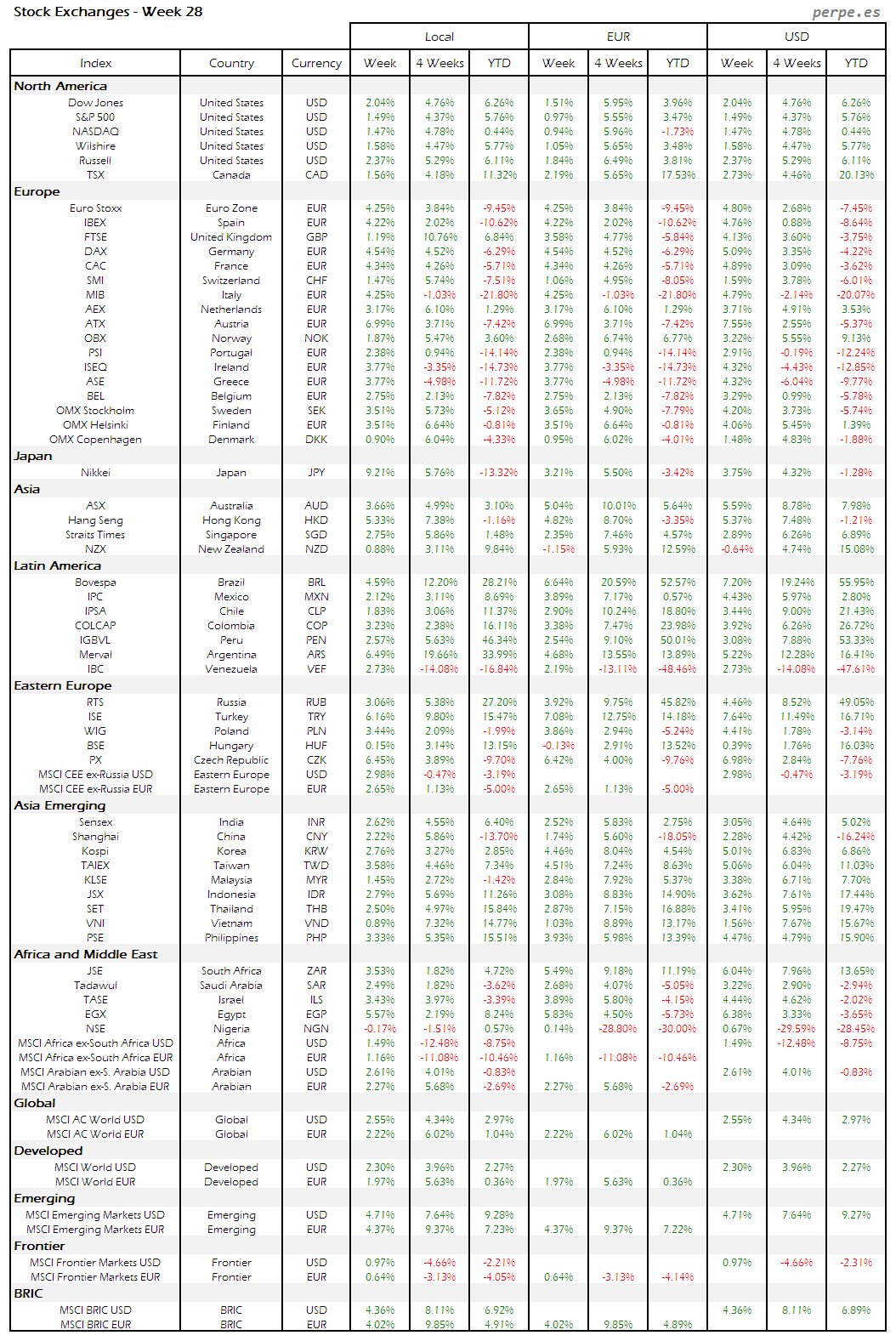 Bolsas Mundiales – Moneda Local, EUR, USD: Semana 28