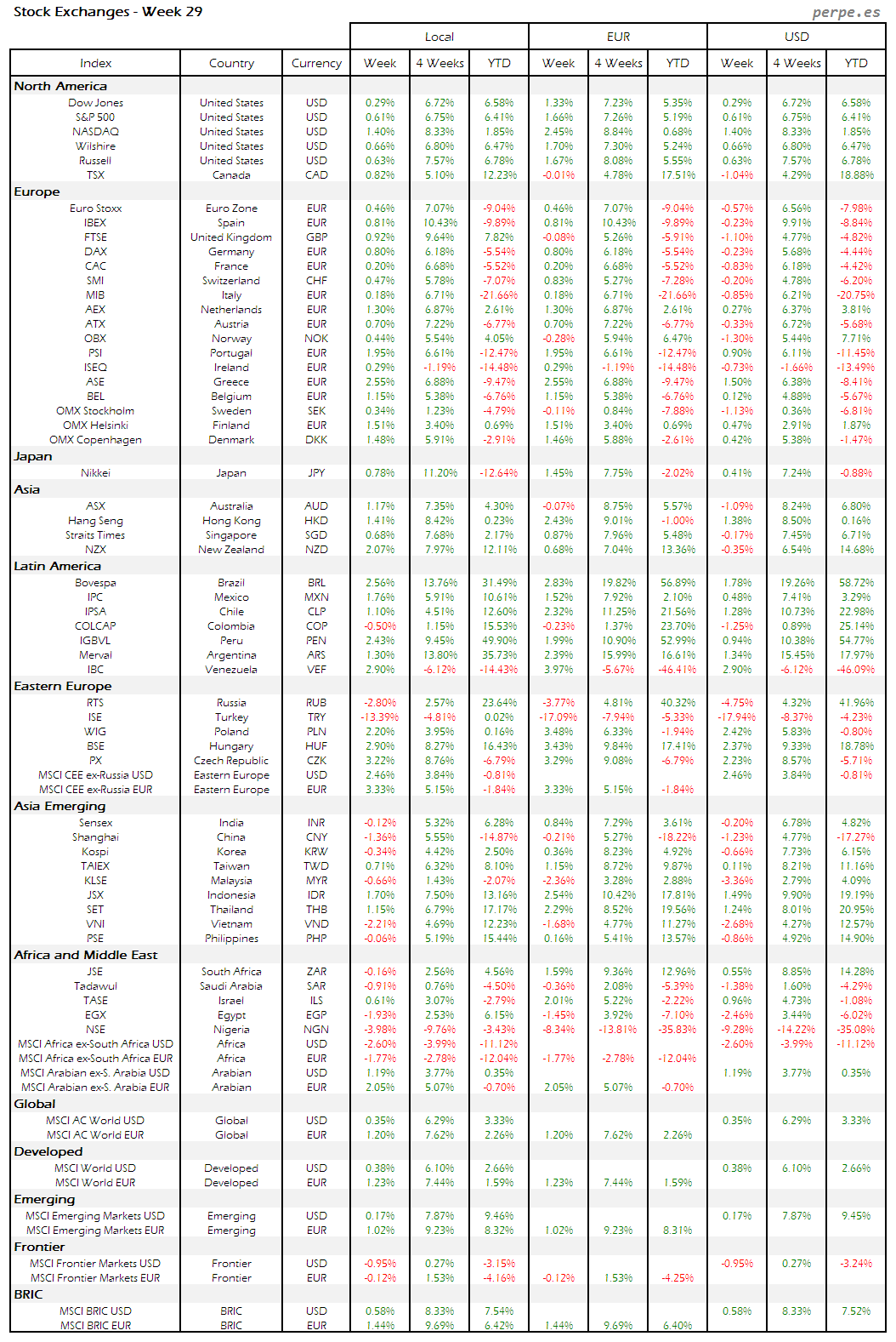Bolsas Mundiales – Moneda Local, EUR, USD: Semana 29