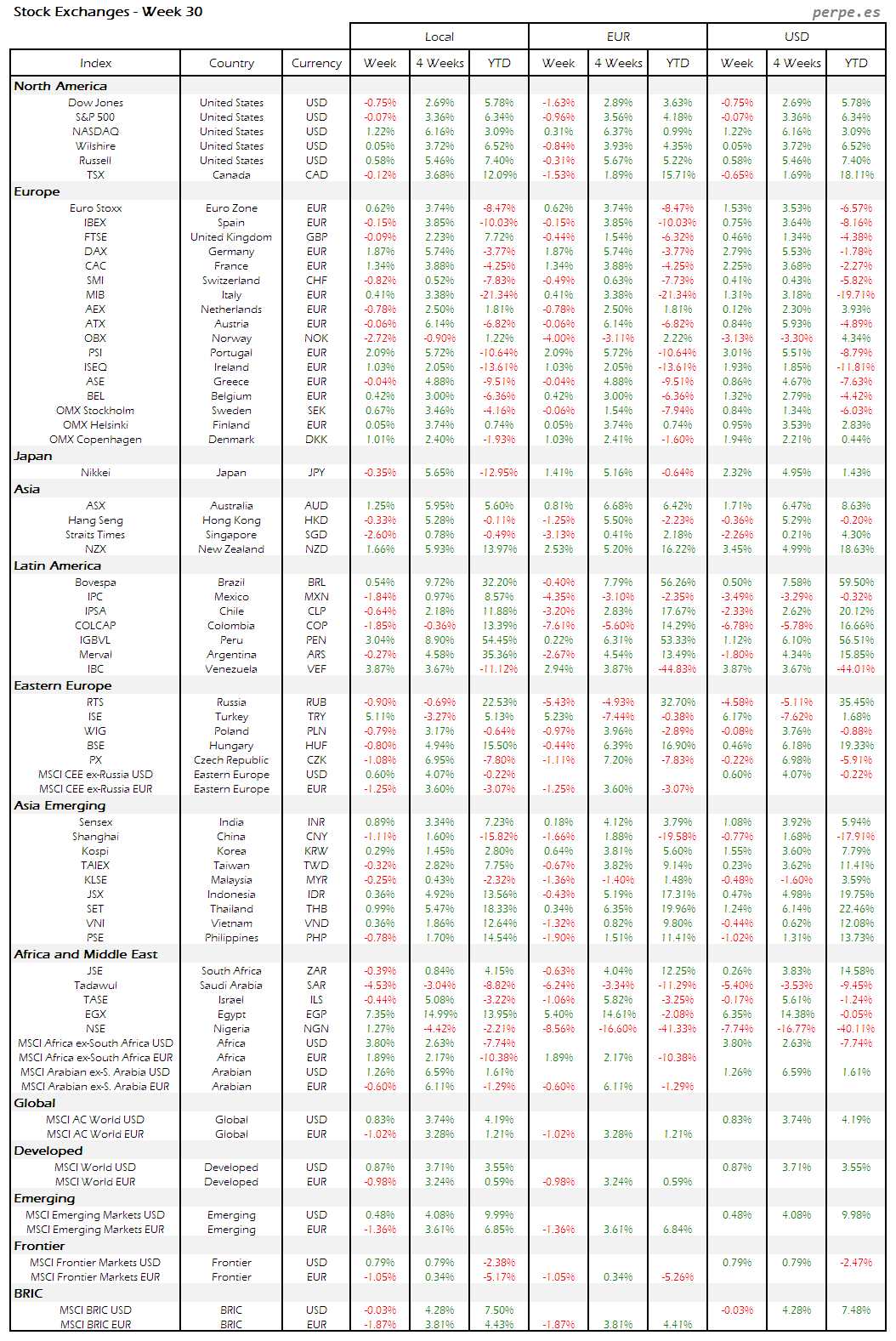 Bolsas Mundiales – Moneda Local, EUR, USD: Semana 30