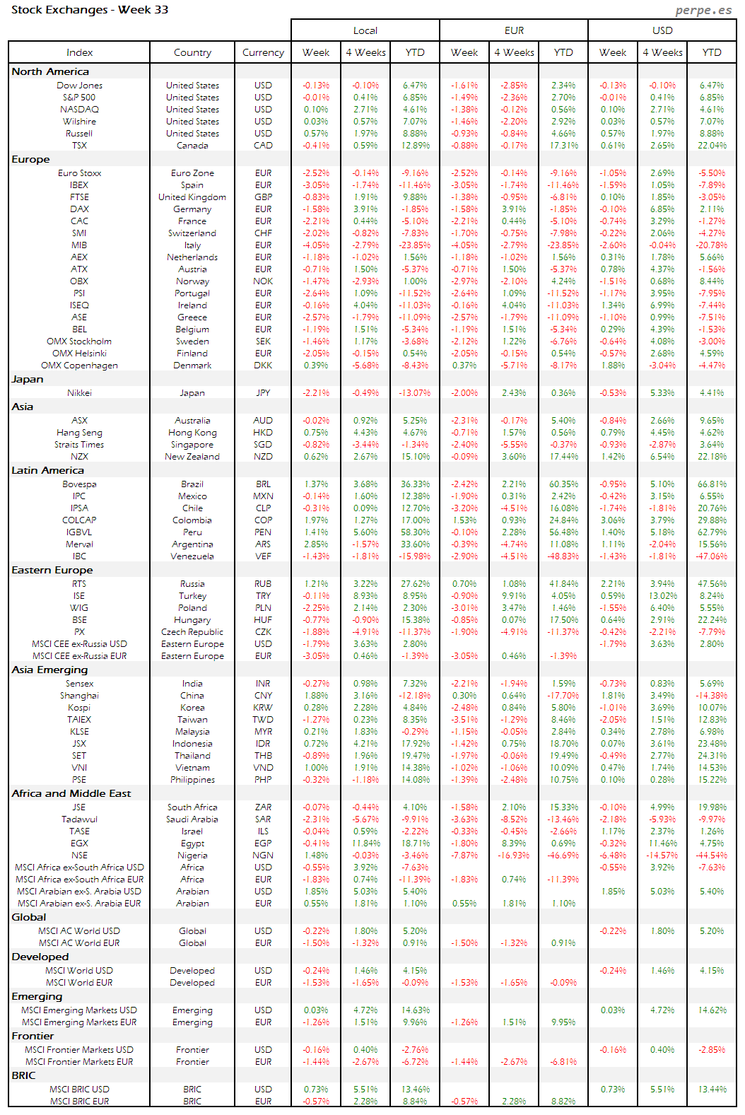 Bolsas Mundiales – Moneda Local, EUR, USD: Semana 33